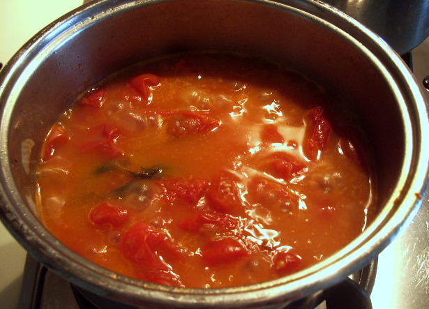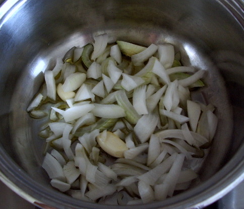 1-Per il sugo di pomodoro far soffriggere in una pentola l’olio d’oliva, la cipolla a pezzetti e l’aglio. Mondare e lavare i pomodori, e aggiungerli anche tagliati se sono grandi.
