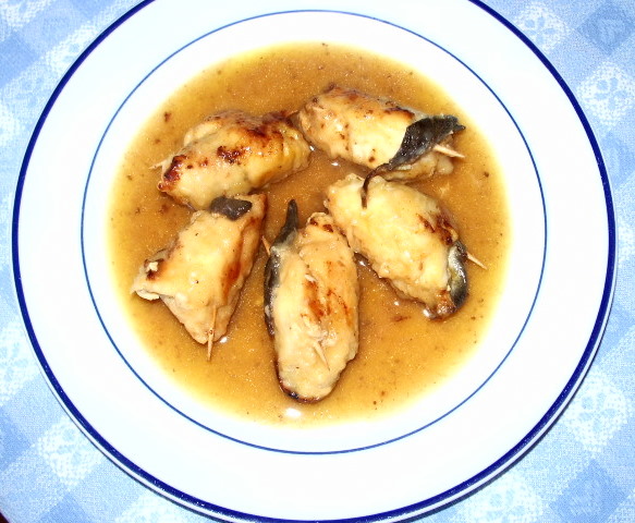5-Rigirare gli involtini, mettere ancora un po’ di sale. Quando sono rosolati, versare il vino bianco e farlo evaporare per qualche minuto. Poi unire mezzo bicchiere di acqua, coprire e lasciar cuocere a fuoco basso per circa un quarto d’ora. Non asciugare troppo l’intingolo, che risulta gustoso.