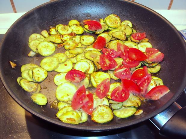 asciugare le zucchine, poi tagliarle a rondelle sottili. Nello stesso tempo portare a ebollizione l’acqua per la pasta. Salarla e unire la pasta.