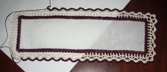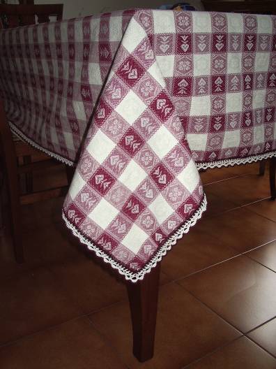 Prima di recarsi al negozio prendere le misure del piano della tavola. Tenere conto che ai lati della tavola devono scendere lembi di uguale misura. Informarsi sulla tenuta della stoffa dopo il lavaggio: spesso le stoffe calano in lunghezza. Controllare il disegno fantasia: fare in modo che coincida nei lati; se ci sono moduli che si ripetono avere cura che il modulo sia intero. Prima di iniziare il lavoro, se necessario, sfilare un filo di tessuto per tagliare la stoffa a dritto filo. Usare forbici taglienti in modo che il bordo non sia sfilacciato. Se il tessuto presenta difficoltà a penetrare con l’uncinetto, togliere un filo per la lunghezza. Acquistare il cotone di grossezza adatta alla stoffa: se la stoffa è sottile meglio usare cotone n.16 o più. Conservare le etichette con il numero di bagno in modo da avere un riferimento se il cotone non bastasse. L’uncinetto deve essere adeguato alla grossezza del cotone.