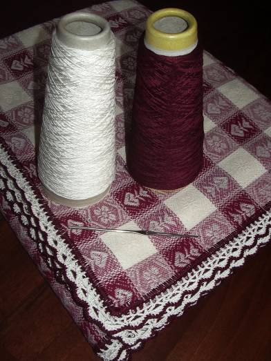 Occorrente per il bordo: -1 uncinetto (io ho usato un uncinetto numero 3) -cotone numero 8 di due colori (ho usato cotone economico che si vende a peso, ma è sufficiente 1 gomitolo da g.50 per colore).